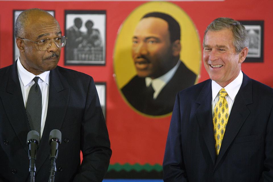384334 05: Secretary of Education designee Rod Paige introduces President-elect George W. Bush at Kelso Elementary School during a Martin Luther King Jr. holiday event January 15, 2001 in Houston, TX. (Photo by Joe Raedle/Newsmakers)Once he arrived in Washington, D.C., his door continued to be open to people on the ground and his staff were (mostly) focused on whether the department was functioning for the people. The interest groups and unions loathed him. He didn’t put their interests first.